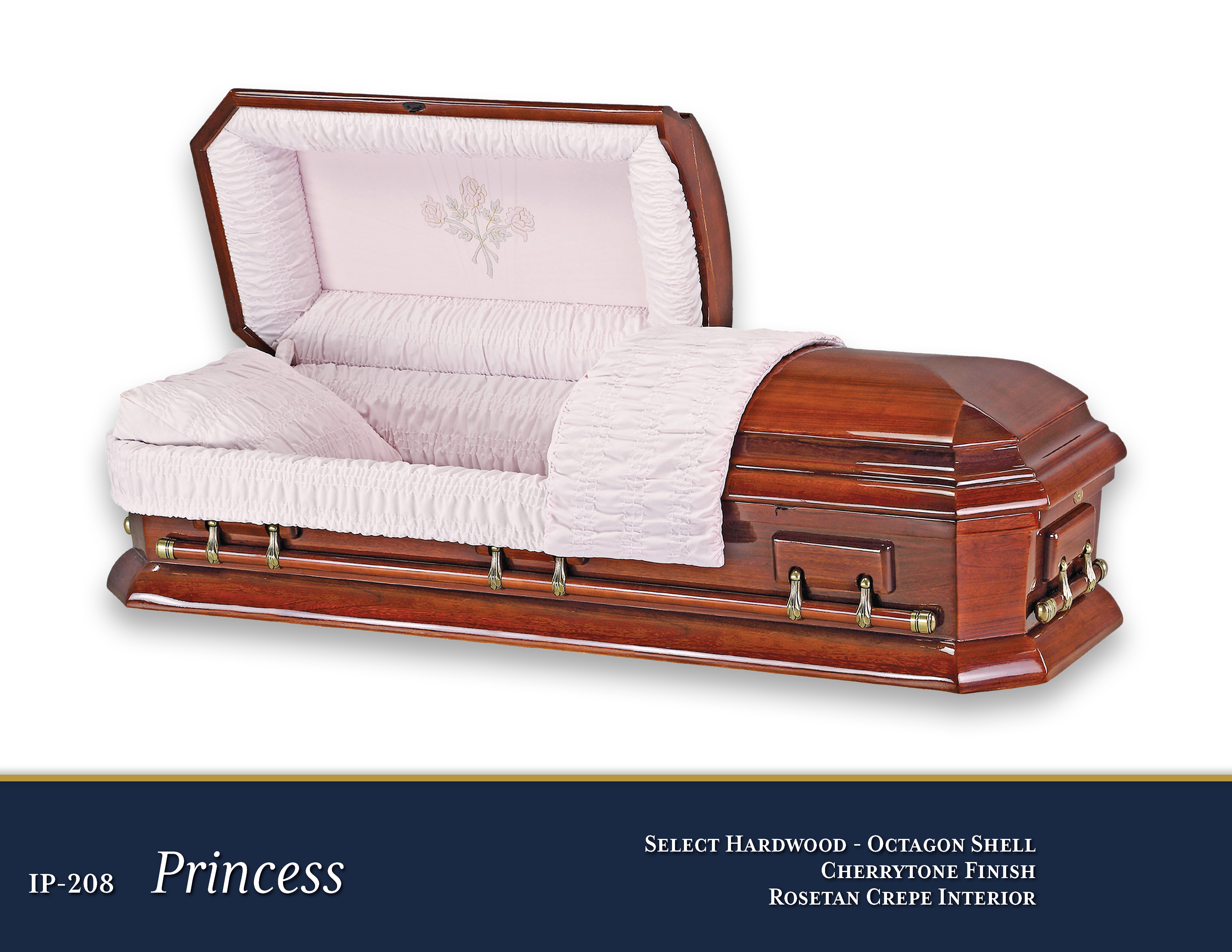IP-208 Princess$2,895.00PriceSelect HardwoodCherrytone FinishPink Velvet Interior with Floral PanelOctagon ShellOpen Shareable Image