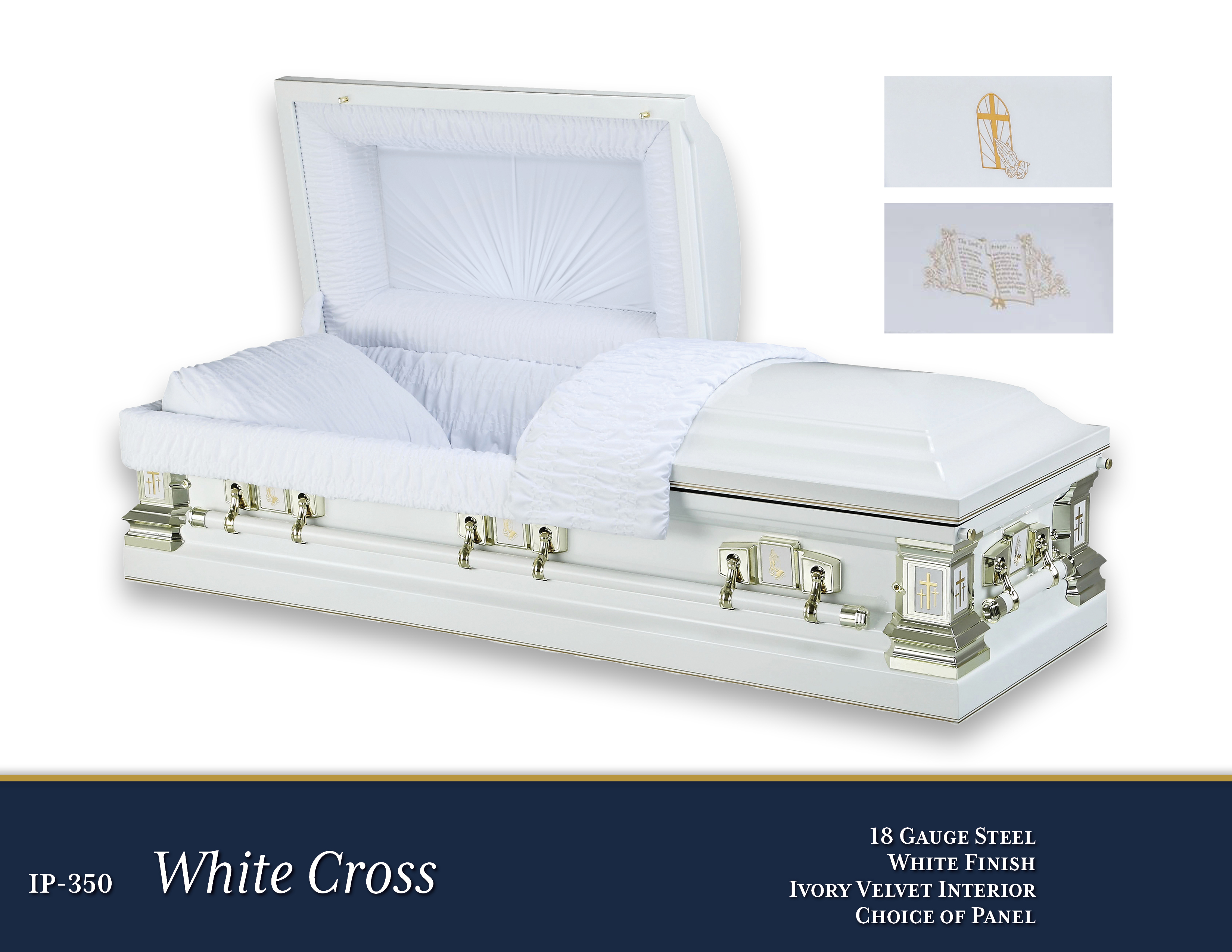 18 Gauge SteelWhite FinishIvory Velvet InteriorOpen Shareable Image