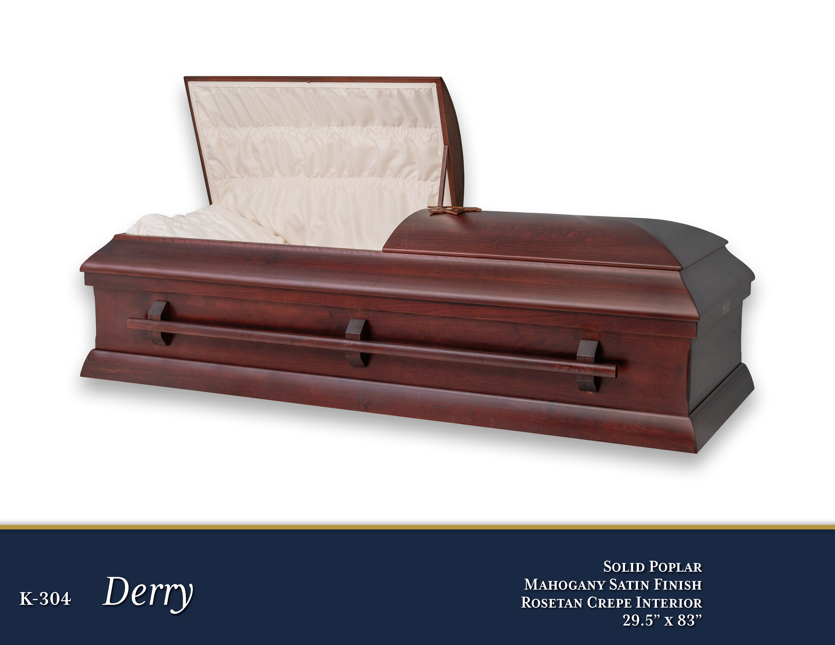 K-304 Derry$4,195.00PriceSolid PoplarMahogany Satin Finish29.5” x 83”Rosetan Crepe InteriorOpen Shareable Image